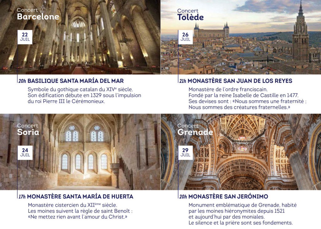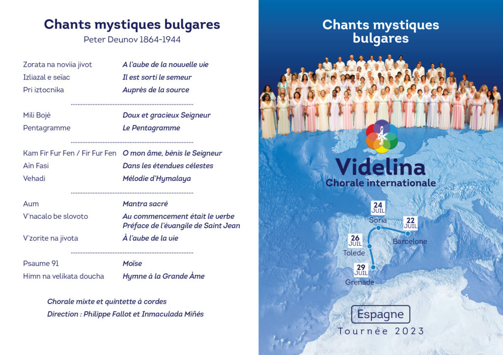 Le programme des concerts est constitué de trois volets complémentaires. La première partie chante les beautés de la nature, qui se reflètent sur l’âme humaine. La deuxième évoque la contemplation mystique. La troisième partie invite à marcher sur le chemin de la lumière et à œuvrer pour un monde meilleur.